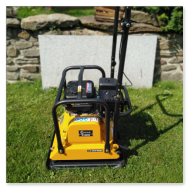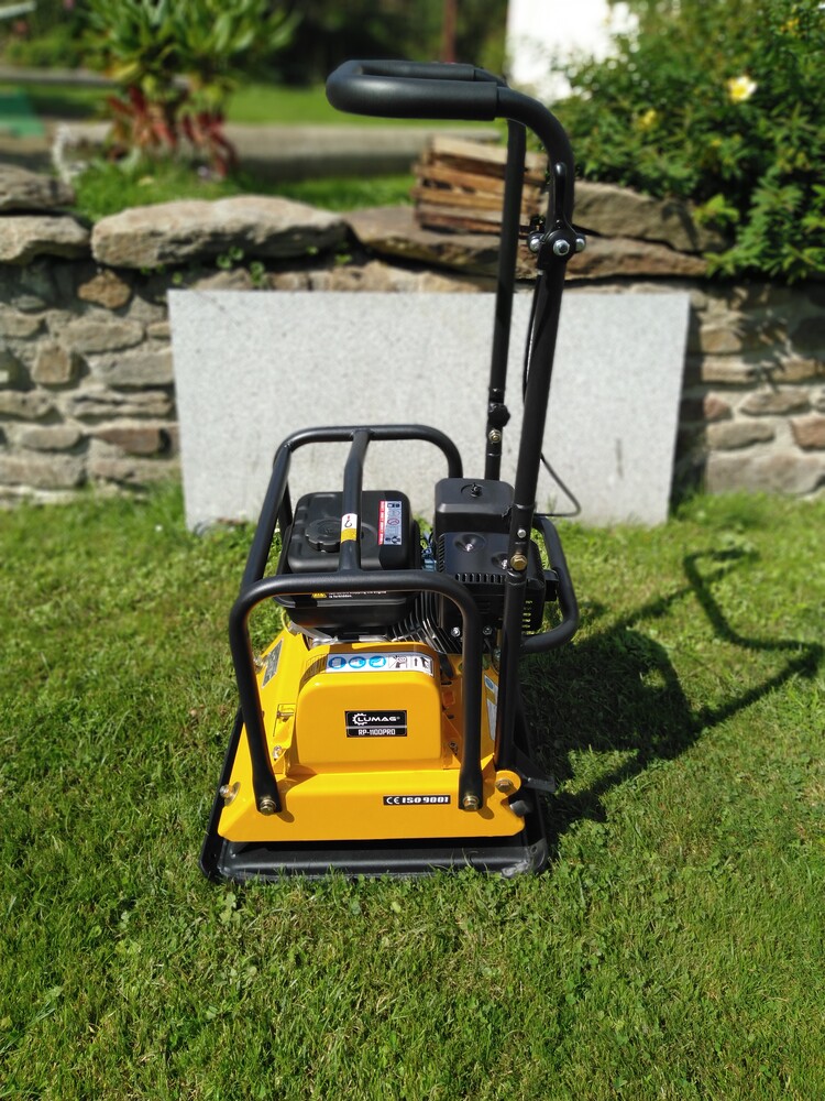 Ve výbavě máme i hutnící desku s pojezdem vpřed o váze 95 Kg, šířka 440mm,hutní do 30cm. Vybavena gumou na dlažbu.