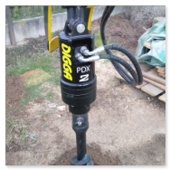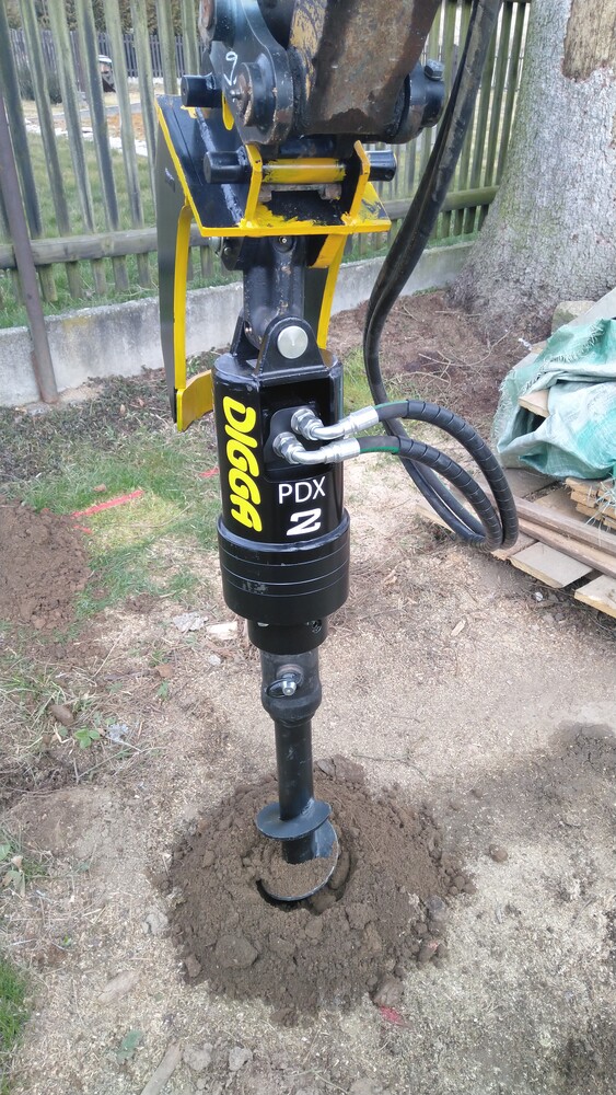 Využitím kvalitní techniky Digga,vznikne téměř přesná díra pro sloupek. Záleží také na skladbě půdy jestli jsou tam kameny, kořeny apod. Od toho se odvíjí i rychlost vrtání. Díra 50 cm hluboká a průměru 150mm je v ornici hotová do minuty. Vrtání děr 100-250mm, hloubka otvoru max. 100cm.