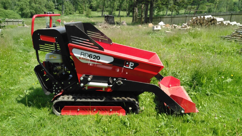 Je určen k přesunu sypkých materiálů, které si sám naloží pomocí lžíce a vše je ovládané ze stupátka pomocí čtyř páček. Nemusí se za ním chodit a uveze i obsluhu společně s další půl tunou materiálu. Stačí mu trochu čistého benzínu, takže je docela tichý a nesmrdí. Minimální šířka na průjezd je 75cm.
