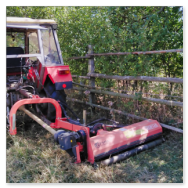 Nesený mulčovač za traktorem určený k sekání zeleně a drobných náletů na jemné kousky kladívky a díky tomu se rostlinné zbytky snáze rozloží. Záběr je 140cm a možno sekat za traktorem, vedle něj, pod i nad vodorovnou osou. Tedy možné posekat příkop nebo i ¨stěnu¨.
