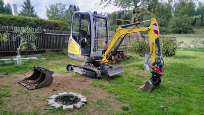 Na práci používám vlastní dva pásové bagry. Dle potřeby k nim dozapojím dempr kolový, pásový, sklápěčku.